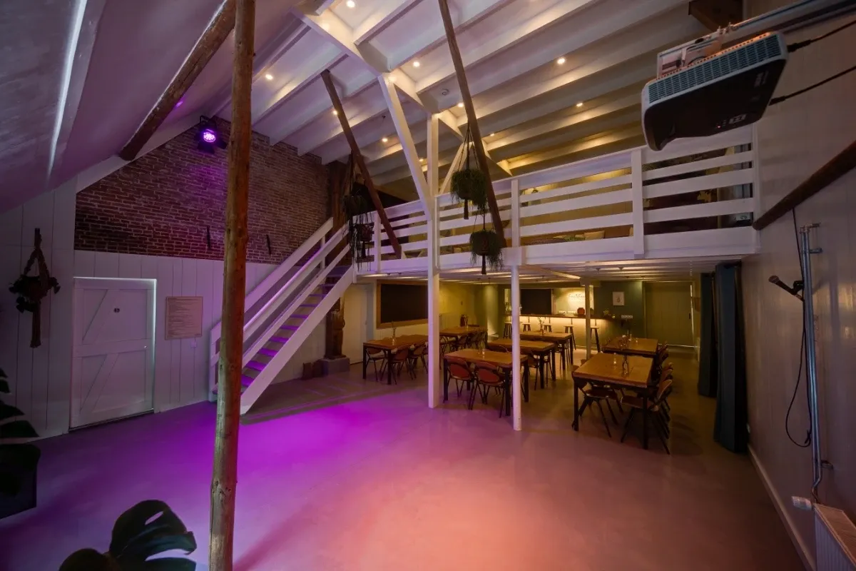 - Vaste bar, feestzaal, eetzaal, lounge en gameroom