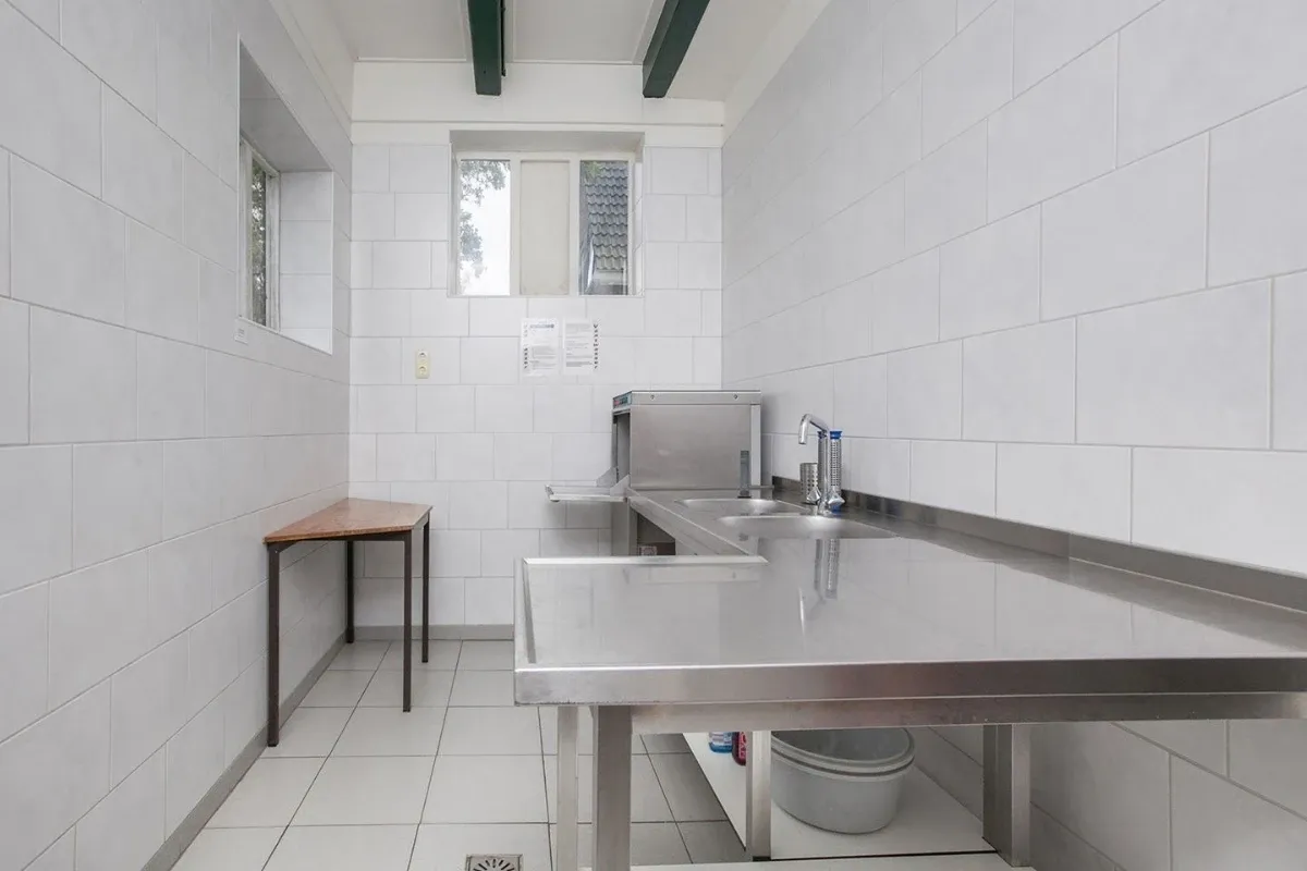 - Heren sanitair: 3 toiletten, 4 douches, 2 wastafels