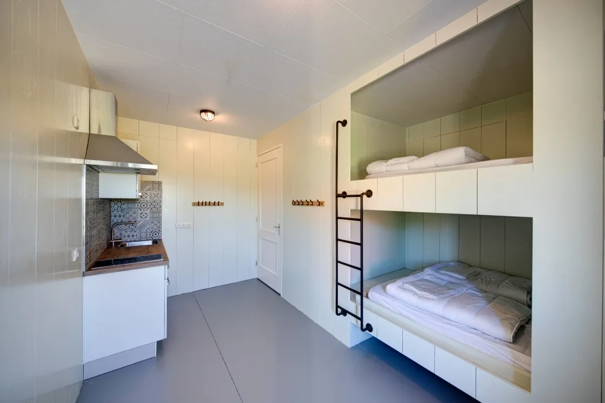 - Kamer 1: 10 persoons slaapkamer = 10 x 1-persoons bed (inclusief toilet, wastafel, douche)